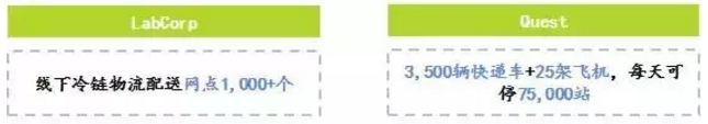 Eg:LabCorp和Quest都擁有強大的線下冷鏈物流配送體系。