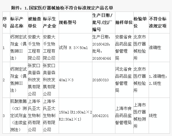附件:1.國家醫(yī)療器械抽檢不符合標(biāo)準(zhǔn)規(guī)定產(chǎn)品名單