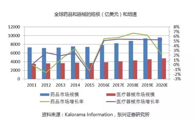 從全球市場分析,醫(yī)療器械和藥品的市場規(guī)模約在0.5:1,在歐美、日本等發(fā)達國家比例可達1:1左右,由于中國長期存在“以藥養(yǎng)醫(yī)”現(xiàn)象,國內(nèi)的藥品規(guī)模遠大于醫(yī)療器械規(guī)模。根據(jù)《2016中國醫(yī)療器械行業(yè)發(fā)展藍皮書》的數(shù)據(jù)顯示2016年醫(yī)療器械市場規(guī)模約為3080億,而中國醫(yī)藥信息中心2016年數(shù)據(jù)顯示2016年藥品的市場總規(guī)模約為2萬億。我國藥品和醫(yī)療器械市場規(guī)模的比例0.15:1,遠低于全球市場標準。