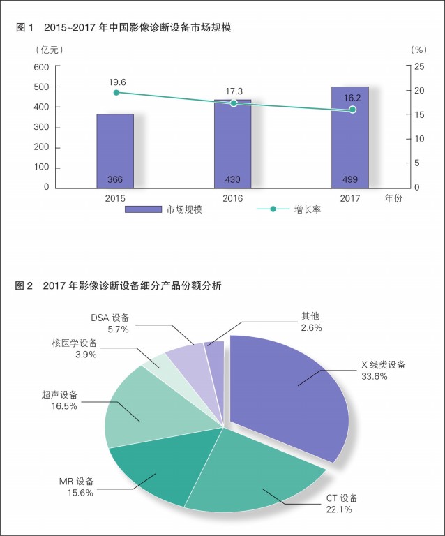 影像診斷設備是現代醫療基礎性的診斷設備,在大型綜合醫院、民營醫院及基層醫療衛生機構中均存在需求。隨著國家逐步落實對基層醫療衛生機構的經費支持,并提高對診斷設備的扶持力度,我國影像診斷設備的需求將進一步加大,行業市場規模處于持續增長狀態。數據顯示,2015~2017年,我國影像診斷設備市場規模從366億元增長至499億元,增長率保持在16%以上,處于較高水平。
