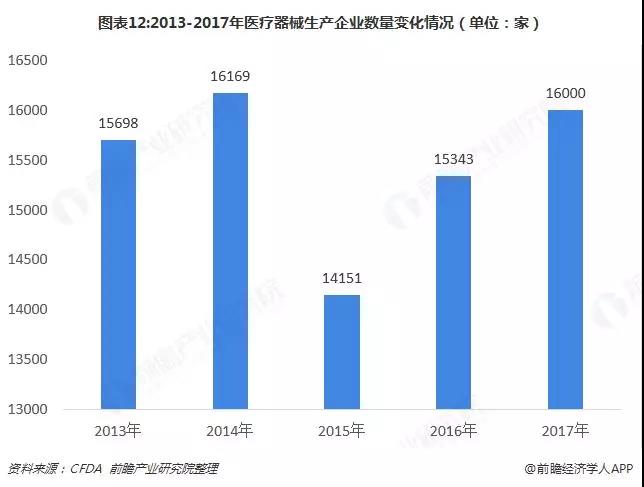 2017年,在我國1.6萬家器械生產企業里面,大部分都規模較?。耗壳皣鴥柔t療器械生產廠家超過萬家,其中90%以上為中小型企業,行業平均收入規模在2300萬元,而國內藥品生產企業的平均營業收入規模在3.4億。此外,由于行業發展時間較晚,存在大量個體戶,進一步導致行業的集中度的分散。
