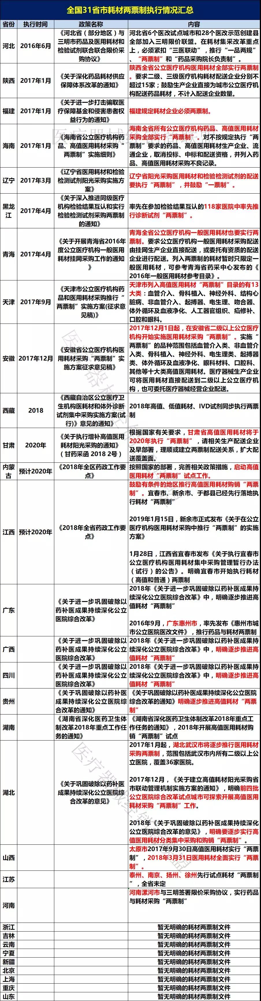 縱觀全國,河北、陜西、福建、海南、遼寧、吉林、黑龍江、青海、天津、安徽、湖北、甘肅、內(nèi)蒙古、江西、廣西、四川、廣東、湖南、山西、江蘇、河南、湖北等20多個(gè)省市自治區(qū),都已經(jīng)有意向,以及部分地區(qū)開始試點(diǎn)或全面執(zhí)行醫(yī)用耗材兩票制。