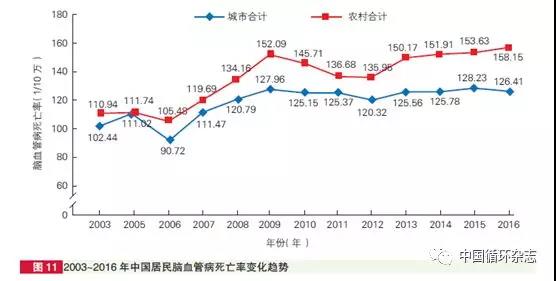 腦血管病:城市死亡率略下降,農(nóng)村明顯升高