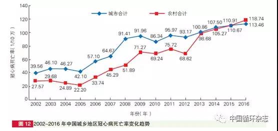 2016年,心血管病死亡率仍居首位,高于腫瘤及其他疾病。每5例死亡中就有2例死于心血管病。