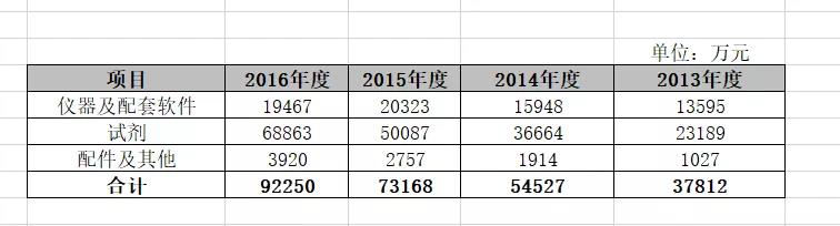 萬(wàn)泰生物2018年度化學(xué)發(fā)光試劑銷售額3723萬(wàn)。
