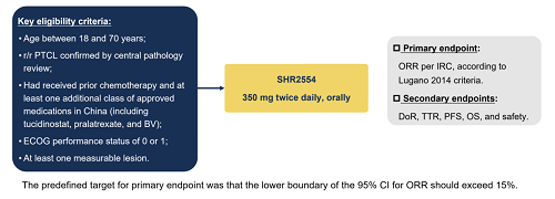 這是一項評估澤美妥司他在復發/難治性外周T細胞淋巴瘤患者中的單臂關鍵性研究[1]。該研究由北京大學腫瘤醫院朱軍教授、宋玉琴教授擔任主要研究者,全國33家中心共同參與。